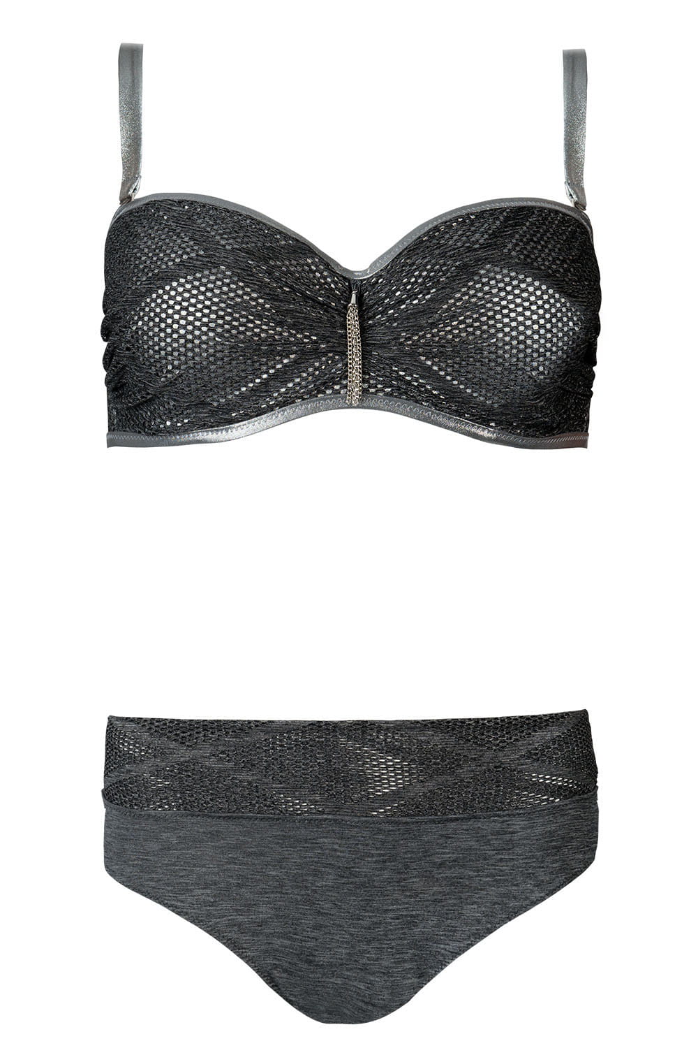 Modelujący sylwetkę z miską uszytą na piance typu bardotka przeznaczonych dla kobiet z bardzo dużym biustem. Specjalnie dopasowany profil fiszbin idealnie podtrzymuje biust. Od wewnątrz tkanina wzmacniająca oraz siatka dają stabilizację podczas noszenia. Ramiączka odpinane z regulowaną długością, które można zapinać klasycznie lub na "krzyż". Figi z nieco wyższym stanem i możliwością niewielkiej, bocznej regulacji wysokości nogawki (troczki widoczne na ostatnim zdjęciu w galerii produktu).