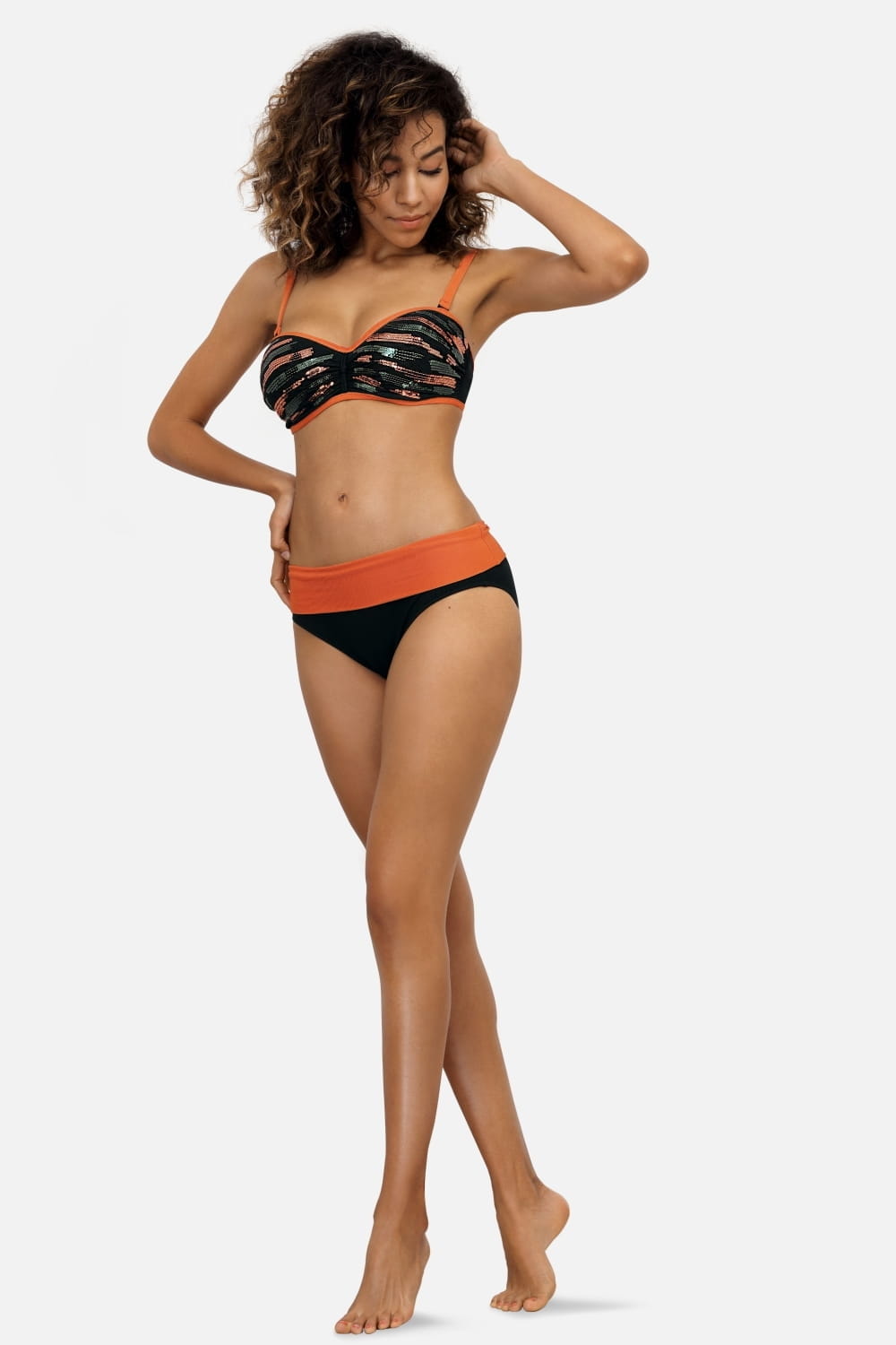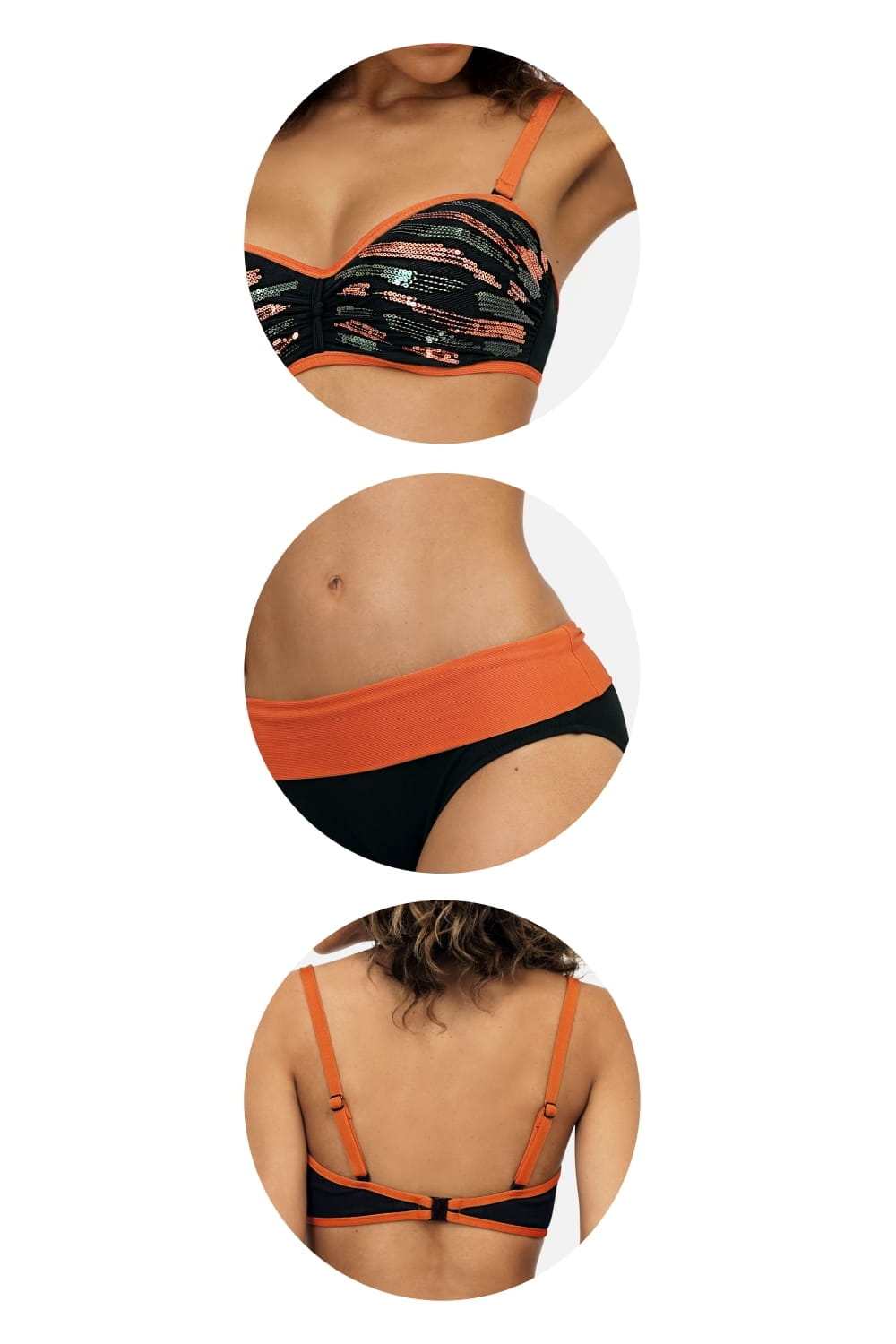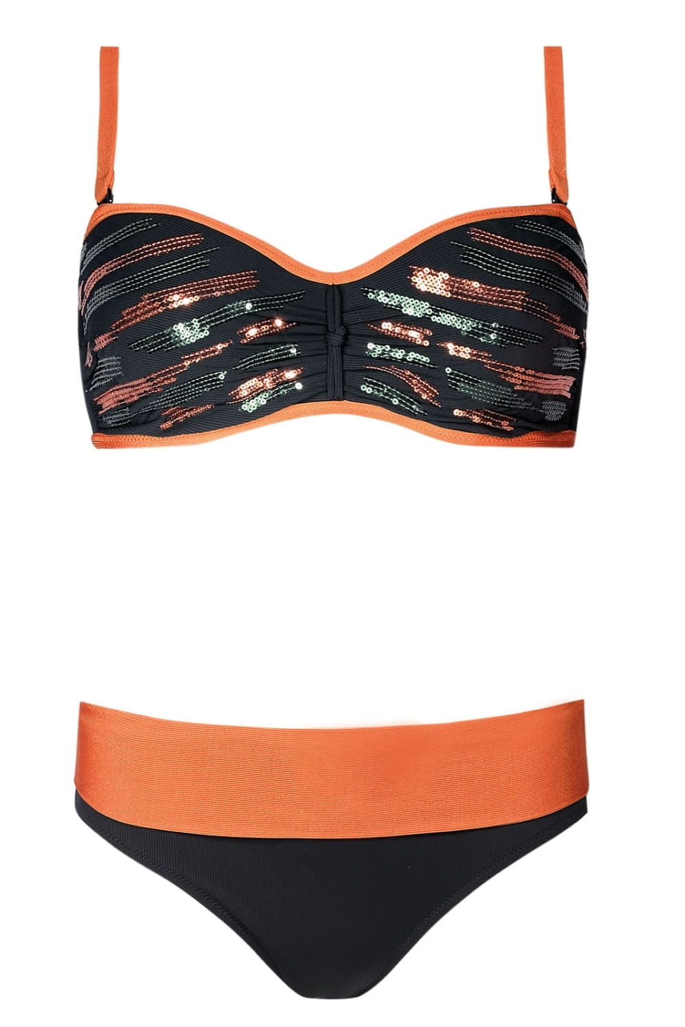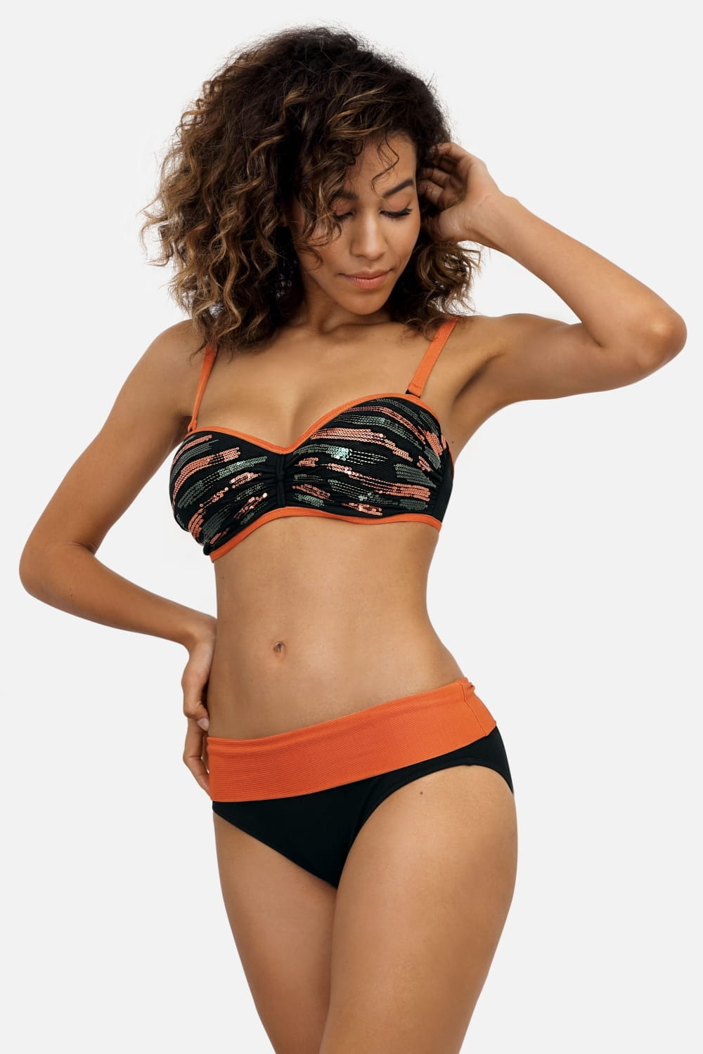 Kostium dwuczęściowy bardotka z modnymi cekinami - figi wysoki stan