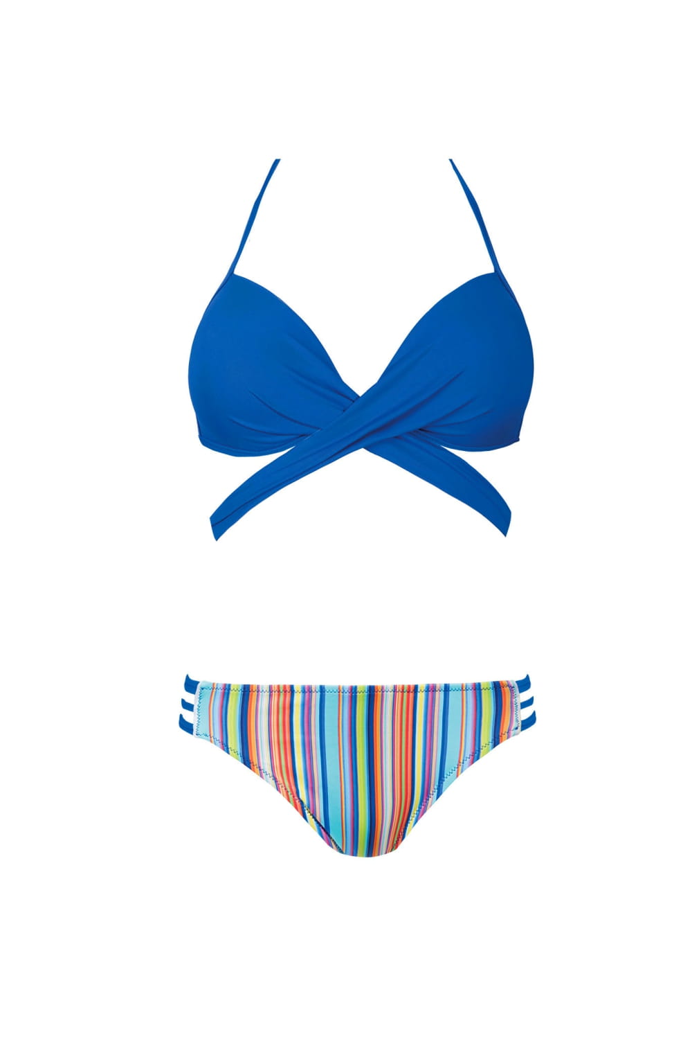 Fason typu bikini, miska usztywniana, z bocznym p-up umiejscowionym na stałe. Mimo lekkiej konstrukcji zapewnia stabilizację biustu, a jednocześnie jego uwydatnienie. Kostium nie posiada fiszbin, jest wiązany na szyi, zapięcie z tyłu. Figi klasyczne z efektownymi cieciami na bokach.