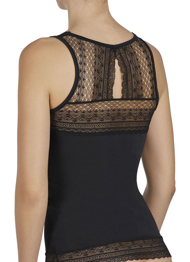 Koszulka bez rękawów Kolekcja Romance. Kobiecy i zmysłowy. Miękka tkanina z mikrofibry o wysokiej elastyczności. Delikatny krój z koronkowymi zdobieniami łączą jakość i elegancję.